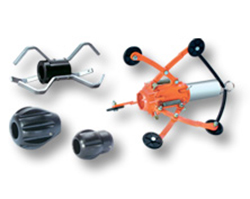 Skid designs Skids keep the camera centered in the pipe for a better view, while reducing drag on longer runs. Standard systems include both 2", 3" and 6" trap skids that protect the camera from abrasion as it slides through cast iron traps. Optional 3-in-1 skid set for 4", 6" and 8" lines, and Universal Roller Skid for 6" to 12" lines are also available.