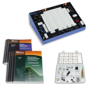 A total of 3360 uncommitted tie-points, available on velcro breadboard plate. Two QT-59B, bus strips. Fifty tie-points for each +5V, variable +15V, and ground if desired. |