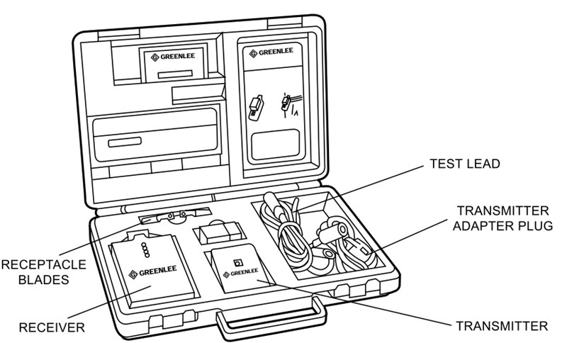 - Accessories included: transmitter plug, 2-receptacle blades, test leads, 2-9V batteries and carrying case