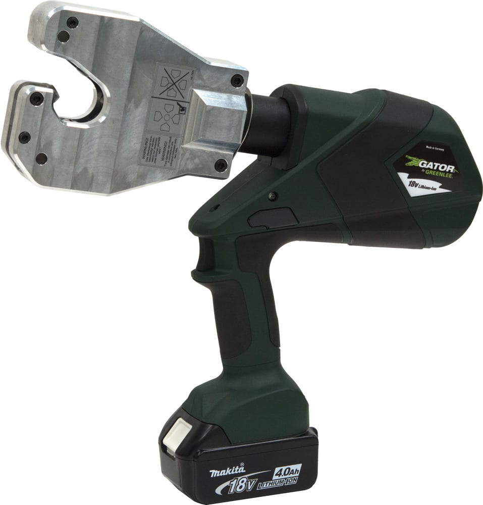 The Greenlee EK6ATLX are hand-held, self-contained, dieless crimping tools intended to crimp aluminum and copper connectors onto electrical cable. These tools have a retraction stop feature which allows the operator to stop the retraction motion of the ram to shorten cycle time. The EK6ATLX also features Bluetooth connectivity, which is enabled through the Gator Eye app.