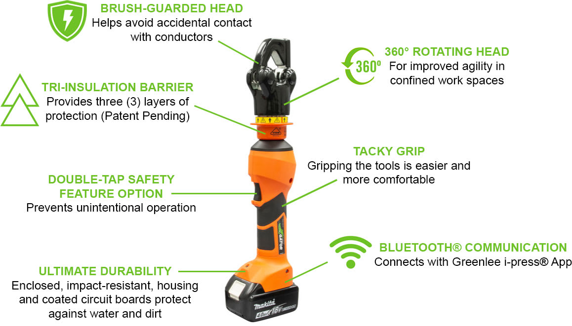 • Bluetooth communication Connects with Greenlee i-press App