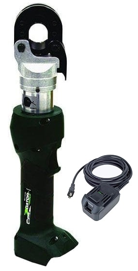 The Greenlee ESG25LX is an inline cutting tool with guillotine style jaw for cutting ACSR, guy strand and more. It is equipped with retraction stop to aid in time savings and has replaceable hardened blades for increased tool longevity. The cutting head rotates 350 degrees and its overmolded tacky grip areas make gripping the tool easier and more comfortable. It also contains an LED work light for illuminating dark work areas.
