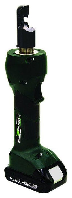 The Greenlee ETS8LX is a cable tray and bolt cutter with an 8mm jaw. It makes flush cuts and can cut through basket style cable tray wire in two seconds. A built in LED screen displays pressure levels as well as tool diagnostics and real time tool feedback. One trigger controls all tool functions and the tool automatically retracts when the cutting cycle is complete. The cutting head can rotate 350 degrees and an overmolded tacky grip area makes gripping the tool easier and more comfortable. It also contains an LED work light to illuminate dark work areas. The following is an overview of the ETS8LX cutting capacity: