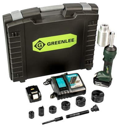 The Greenlee Intelli-Punch 11 ton driver is a hand-held, self-contained knockout driver intended to be used with Greenlee punches, dies, and draw studs for punching holes through mild steel, stainless steel, brass, copper, aluminum, fiberglass, and plastics.
