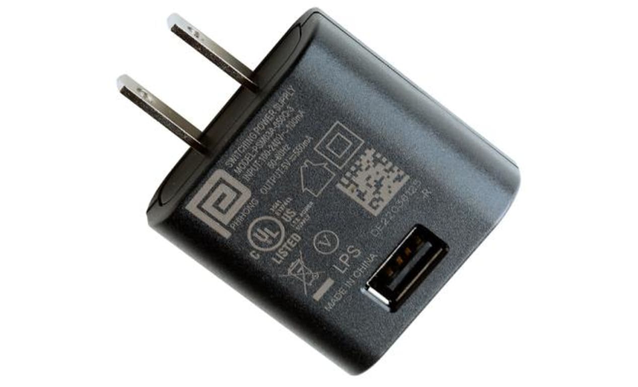 The HOBO AC-USB-1 is a power adapter to be used with the HOBO CABLE-USBMB USB cable (sold separately) to provide AC power to the HOBO MX1102. The adapter features a compact design and fixed prongs (US plug type).