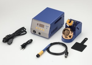 The FX-801 is the ideal soldering station for extremely large mass components such as, high current inductor coils, heat sinks, large transformers, shields and other difficult to solder applications where there is a significant amount of thermal inertia that must be overcome. The station uses T33 Series Tips, which feature 260W composite ceramic heating elements. These heating elements have a top controlled temperature of 940°F (500°C) and high mass shapes, enabling you to solder some of the most challenging solder joints at only 750°F (400°C) and without preheating!