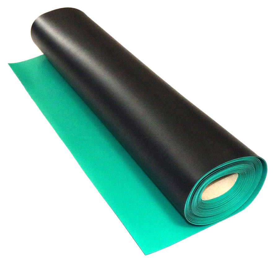 Made from high-quality nitrile butadiene rubber (NBR) with a conductive bottom layer and dissipative top layer. The surface is a smooth, semi-gloss surface that is easy to clean and hot solder resistant with a non-skid backing. The material is resistant to most chemicals found in assembly areas and provides durability and excellent electrical performance. *All mat sold in rolls of 32 linear feet, optimized for shipping, handling, and scrap reduction.
