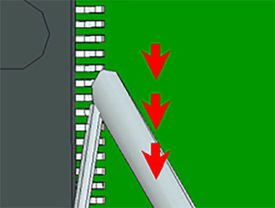 Put the cut surface to the leads and drag it slowly. Note: Apply flux to leads and land pads before soldering. It prevents the troubles such as solder bridge.