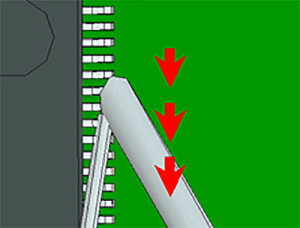 Put the cut surface to the land and drag the tip slowly while feeding solder. Note: Some IC is specified by manufacturer not to be touched electrode by tip end.