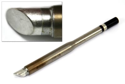 This type has a shape like a cone or column cut at a slant, which allows users to select the cut surface size depending on the workpiece. It is used for drag soldering and pre-tinning of lead wires.
