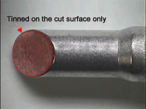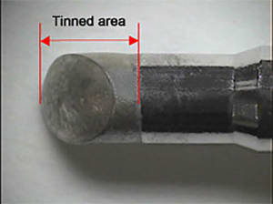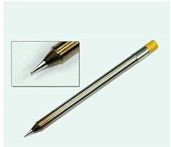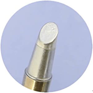 This tip is used with the Hakko FX-100 Induction Heat Soldering System. The T31-03 series use a highly precise manufacturing process that allows for more repeatable tip temperature between not only the same tip shape but also between tips of different shapes within the same series. Tip construction provides similar durability to that of the Hakko T15 Series tips, thus allowing you to experience Hakko's renowned tip life. The new high-frequency induction heaters are precisely tuned and highly responsive with excellent power output. This type has a shape like a cone or column cut at a slant, which allows users to select the cut surface size depending on the workpiece. It is used for drag soldering and pre-tinning of lead wires.