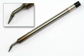 This tip is used with the Hakko FX-100 Induction Heat Soldering System. The T31-03 series uses a highly precise manufacturing process that allows for more repeatable tip temperature between not only the same tip shape but also between tips of different shapes within the same series. Tip construction provides similar durability to that of the Hakko T15 Series tips, thus allowing you to experience Hakko's renowned tip life. The new high-frequency induction heaters are precisely tuned and highly responsive with excellent power output. This type has a shape like a cone or a column cut at a slant, which allows users to select the cut surface size depending on the workpiece. It is used for drag soldering and pre-tinning of lead wires.