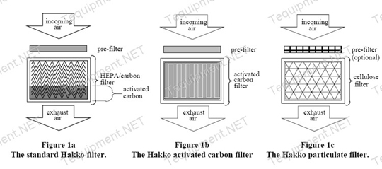 The standard filters used in the HAKKO HJ3000-series fume extractors contain an activated carbon element built into the filter. This filter is designed to last the life of the main HEPA filter. Carbon filters have absorption ratings of 80-85%.