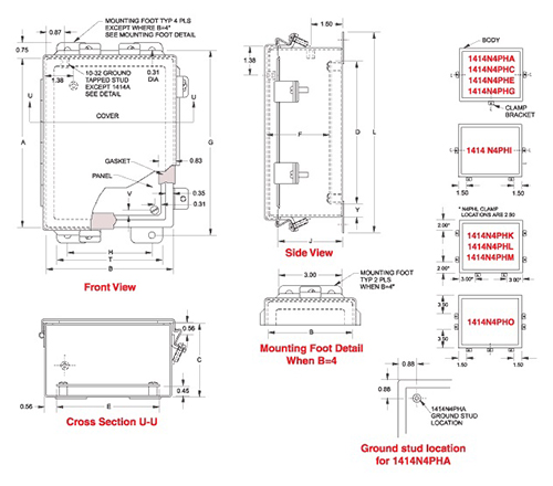 N4 J Box, Hinge Cover - 6 x 4 x 3 - Steel/Gray