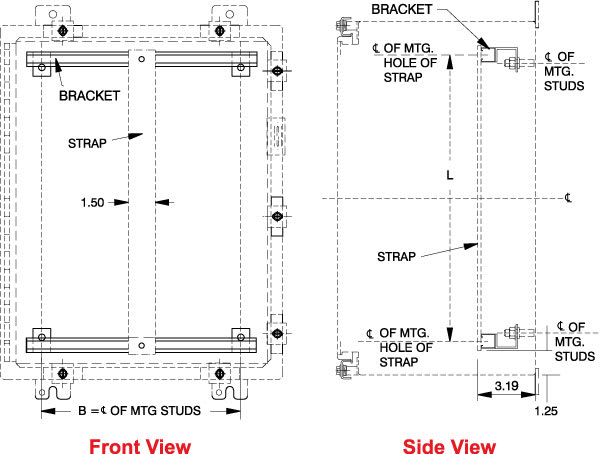 • Brackets combined with collar stud length provide 3" minimum clearance from the rear of the enclosure