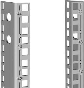The Hammond CPR2370SZPL is 23"W x 70"H square hole punched mounting rails constructed in 12-gauge steel. These rails come stamped and numbered in 1U (1.75") increments. This model is compatible with C2 and REFK cabinets and is compatible with 19" and 24" rack mounting. These rails are finished in zinc steel plate. Mounting hardware included: