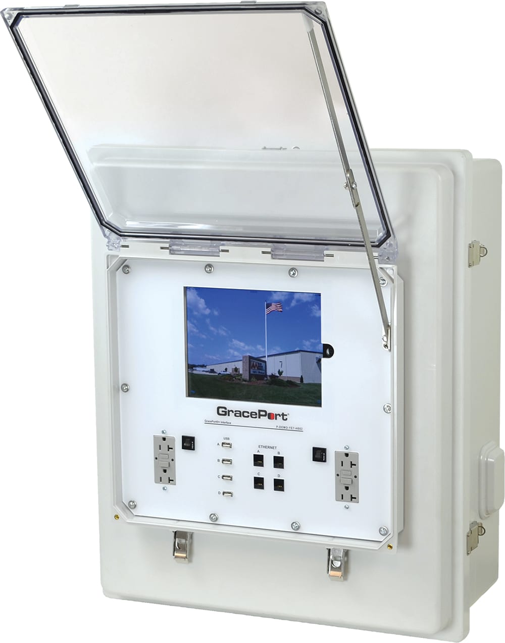 • When HMI Cover mounted with hinge along top edge, prop arm unfolds to provide hands free support