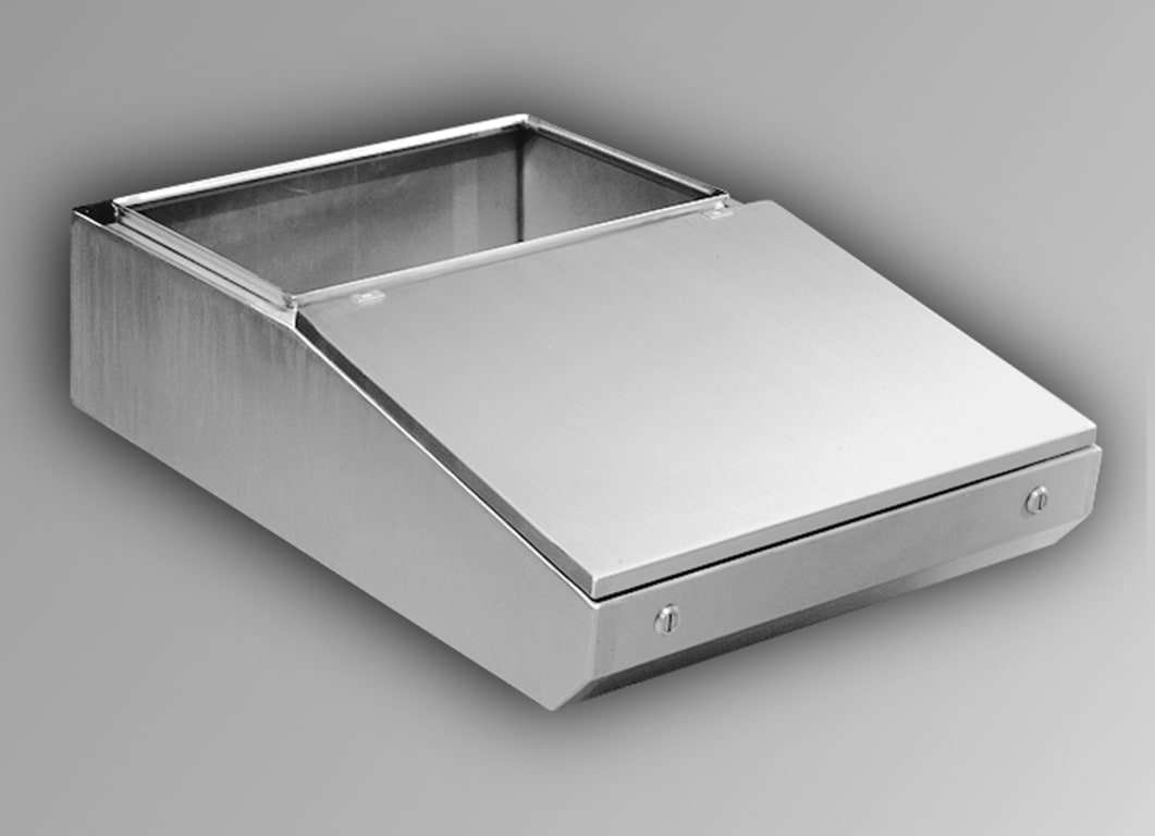 - Provides an ideal sloped surface for mounting keyboards, switches, indicator lights, and/or dials.