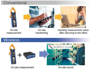 Supports labor savings by preventing transcription errors Previously, measured values were recorded by hand and then they were typed at the office. By making measurements wireless, it will prevent transcription errors from paper to PC, save labor and reduce the work hours.