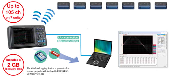 HIOKI believes that by breaking a conventional logger into separate measurement and data-gathering components and using wireless technology to send data from the former to the latter, it is possible to eliminate burdensome wiring requirements and improve measurement efficiency.