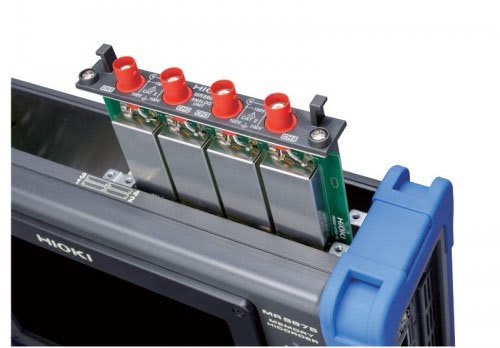 The Hioki MR8901 is a 4 channel, voltage measurement, DC to 100kHz bandwidth analog input module for the Hioki MR8875. Development Background Recording instruments are essential tools in the development of electric vehicles (EVs), which increasingly are entering into widespread use, to evaluate motor performance. Since EVs incorporate large numbers of batteries, high-voltage measurement has become a necessity. Another application involves equipment designed for use in emerging nations, where commercial power supplies tend to operate at higher voltages and exhibit greater voltage fluctuations than in Japan. Consequently, there are many examples of abrupt voltage fluctuations damaging electrical and precision equipment. Demand for high-voltage measurement in order to analyze equipment operation is increasing as manufacturers work to develop devices that can withstand these challenging operating conditions.