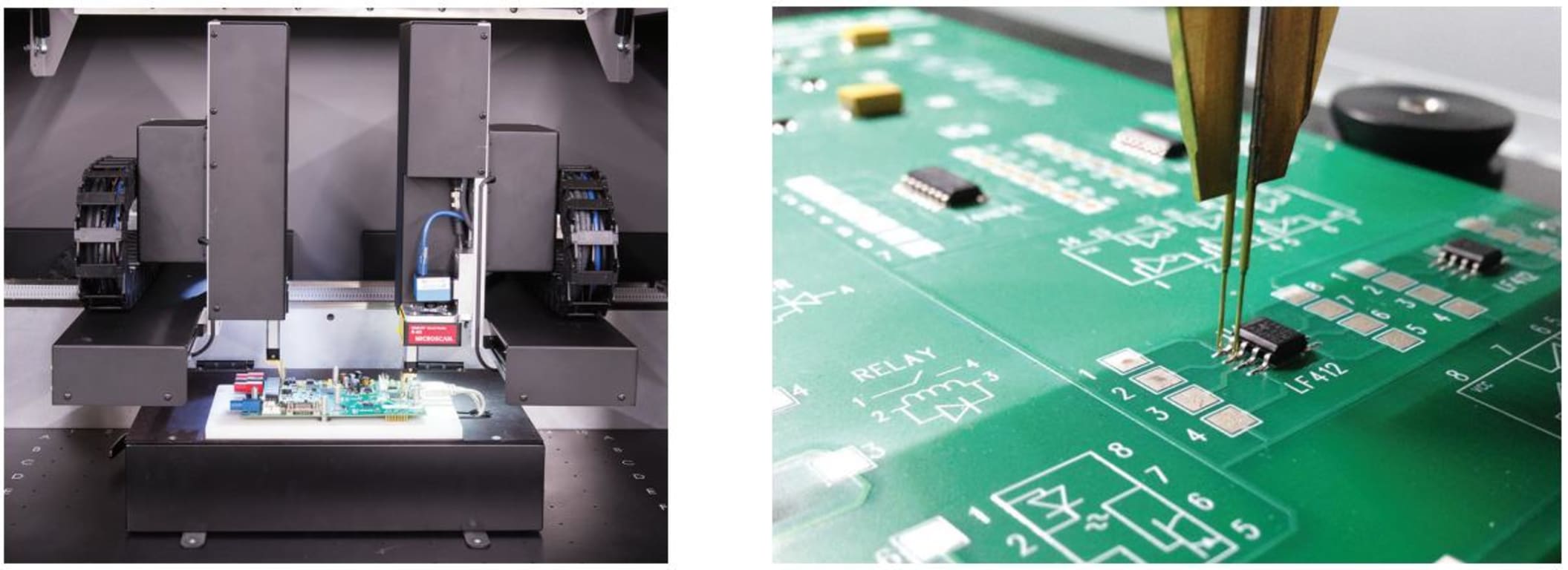 The dual head Access DH2 allows you to probe between two specific points whereas the single head prober requires a common connection used for the "return" line. The Access DH2 was designed as an open architecture system where the user can setup testing processes of their own design. The Access DH2 is built on its own cabinet with space underneath for additional test equipment.