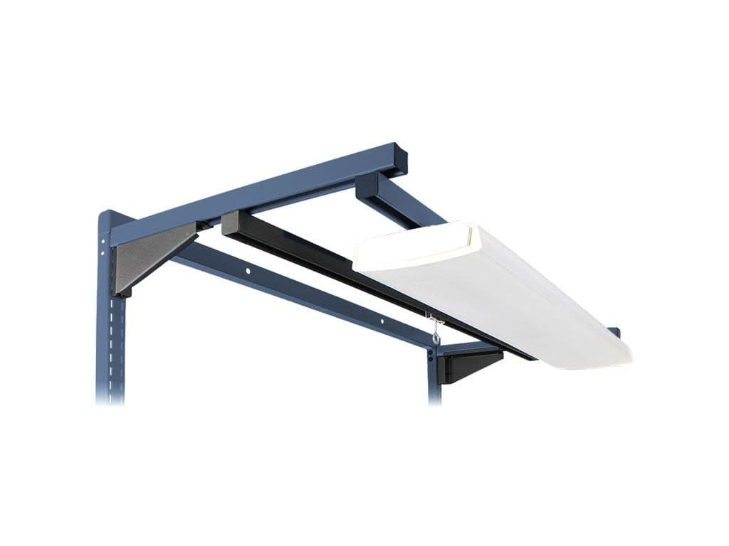 The IAC Industries QS-1022971-BL Econo Light is a 48" light mounted to a 48" Workbench support structure. It accepts two (2) T8 Tube Lights (not included) and has an on/off switch in an 8-ft. power cord. The QS-1022971-BL comes in white fixture color and EZE Blue color for the support structure.