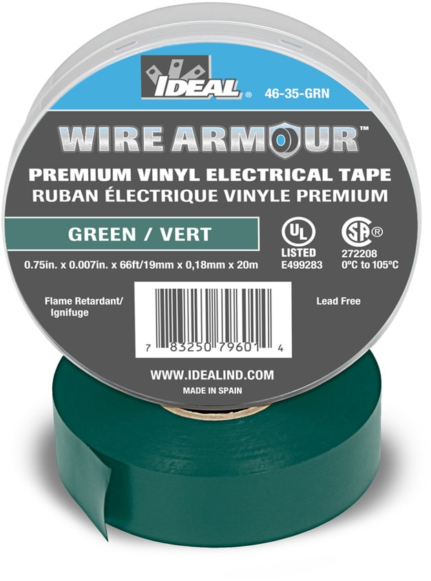 The IDEAL line of premium vinyl electrical tape provides superior performance over a wide range of temperatures up to 105°C. Suitable for wide temperature extremes, from cold weather applications as low as -18°C. With blue core technology that provides high elasticity, that is flame retardant, high UV resistance that is impervious to water, oil, acids, alkalis, and a wide variety of corrosive chemicals. Primary for insulation for splices up to 600V. Brought to you by IDEAL Electrical, your manufacturer of choice.