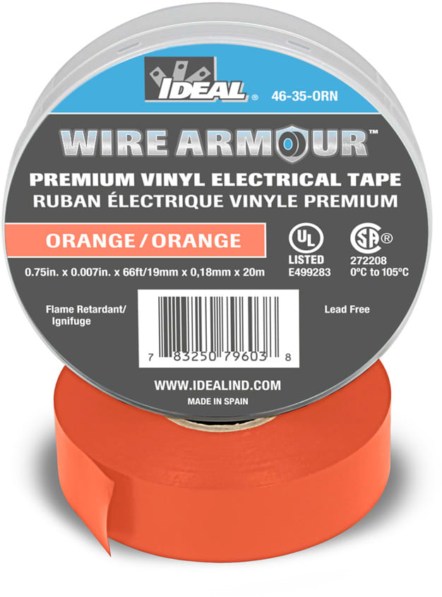 The IDEAL line of premium vinyl electrical tape provides superior performance over a wide range of temperatures up to 105°C. Suitable for wide temperature extremes, from cold weather applications as low as -18°C. With blue core technology that provides high elasticity, that is flame retardant, high UV resistant that is impervious to water, oil, acids, alkalis and a wide variety of corrosive chemicals. Primary for insulation for splices up to 600V. Brought to you by IDEAL Electrical, your manufacturer of choice.