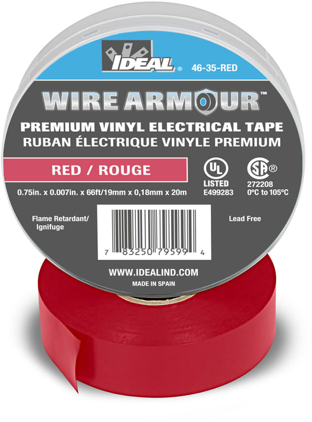 The IDEAL line of premium vinyl electrical tape provides superior performance over a wide range of temperatures up to 105°C. Suitable for wide temperature extremes, from cold weather applications as low as -18°C. With blue core technology that provides high elasticity, that is flame retardant, high UV resistance that is impervious to water, oil, acids, alkalis and a wide variety of corrosive chemicals. Primary for insulation for splices up to 600V. Brought to you by IDEAL Electrical, your manufacturer of choice.