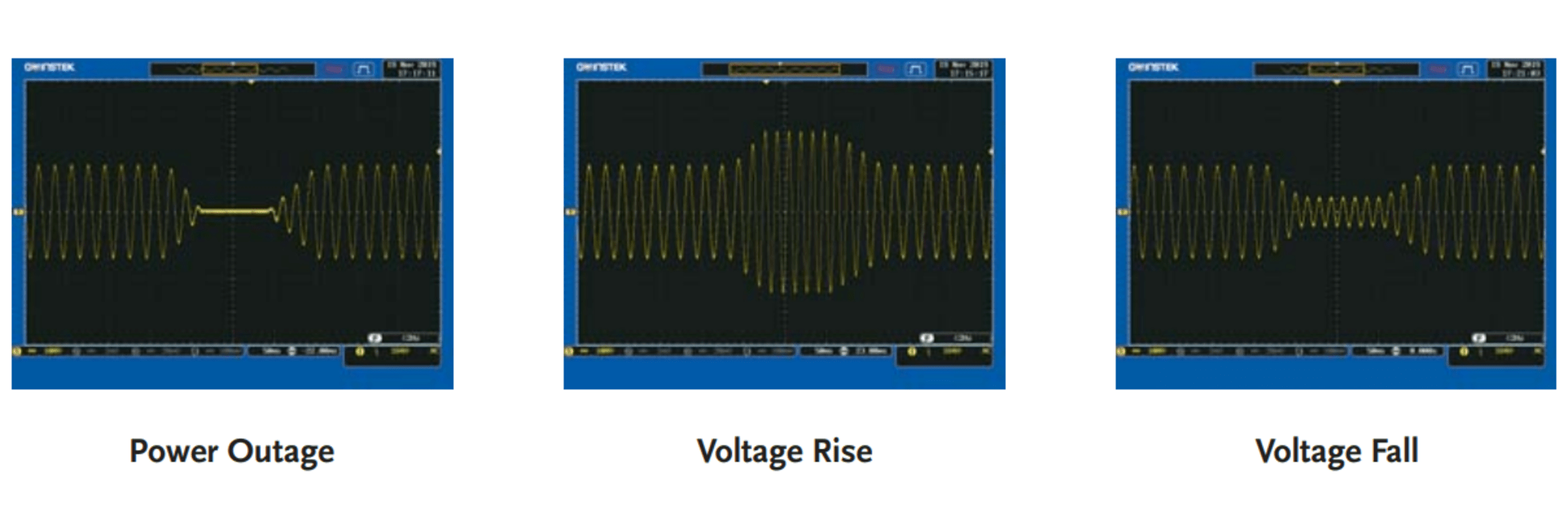 The ASR-2000 series provides users with waveform output capabilities to meet the test requirements of different electronic component development, automotive electrical devices and home appliances, including 1) Sequence mode generates waveform fallings, surges, sags, changes and other abnormal power line conditions; 2) Arbitrary waveform function allows users to store/upload user-defined waveforms; and 3) Simulate mode simulates power outage, voltage rise, voltage fall, and frequency variations. When the ASR-2000 series power source outputs, it can also measure Vrms, Vavg, Vpeak, Irms, Iavg, Ipeak, IpkH, P, S, Q, PF, CF, 100th-order Voltage Harmonic and Current Harmonic. In addition, the Remote sense function ensures accurate voltage output. The Customized Phase Angle for Output On/Off function can set the starting angle and ending angle of the voltage output according to the test requirements. V-Limit, Ipeak-Limit, F-Limit, OVP, OCP, and OPP function settings can protect the DUT during the measurement process. In addition to OTP, OCP, and OPP protection, the ASR-2000 series also incorporates the Fan fail alarm function and AC fails alarm function.