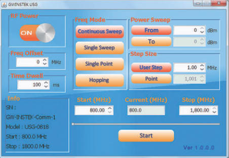 Fixed Frequency / Single Sweep / CW Sweep / Hopping / Power sweep |
