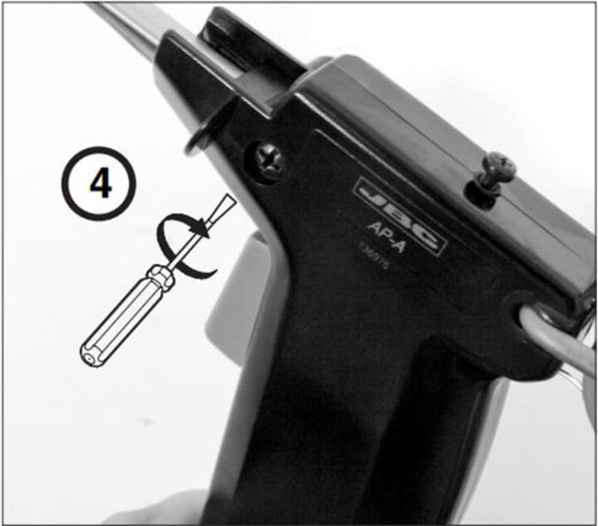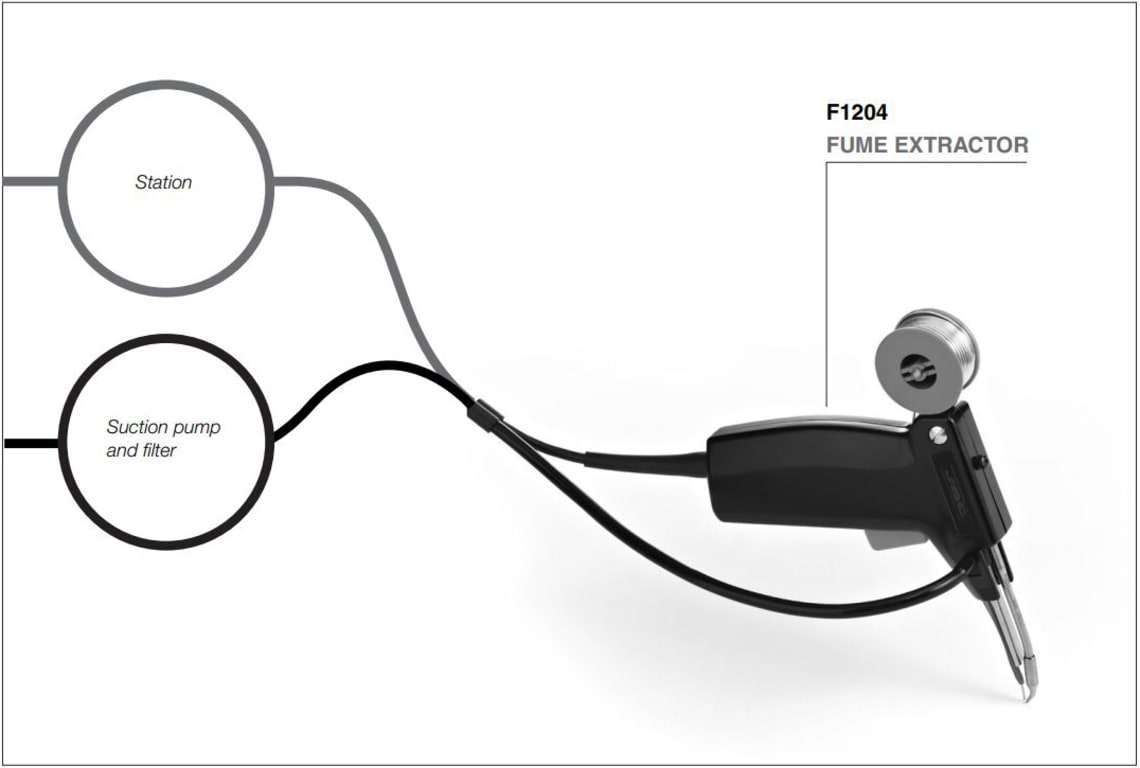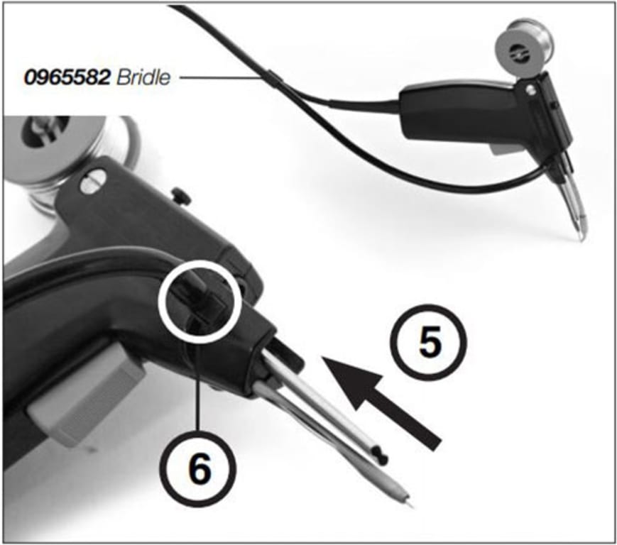4-5-6 Loosen the screw (4). Position the metal suction tube and press it into place. Strap the silicone tube to the soldering iron cable using the bridles to make it more manageable. Tighten the screw (4).