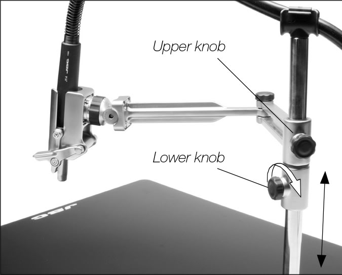 The RWB-B arm allows adjustment for different heights according to your work needs through the vertical axis rule. Slide the tool holder to the appropriate height and secure by tightening the lower knob to guarantee stability.