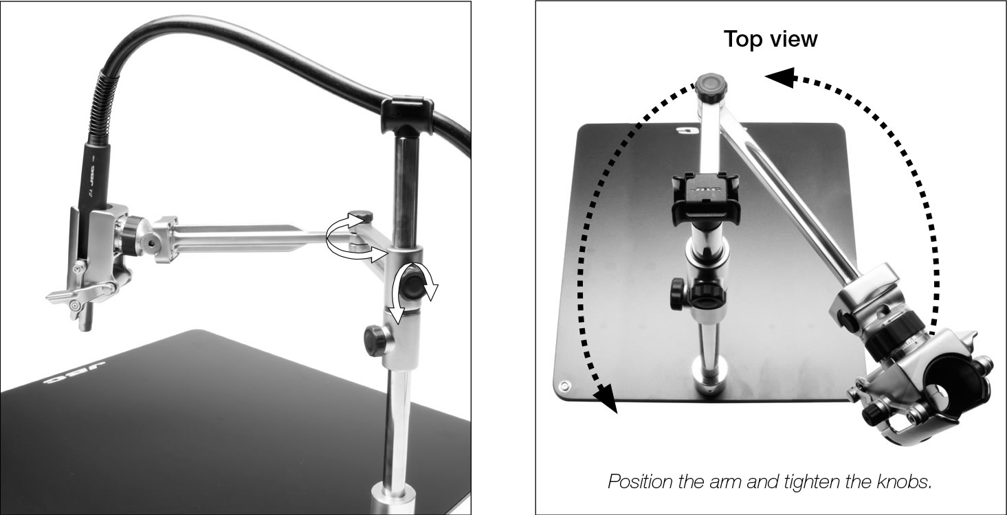 The RWB-B arm allows adjustment for different positions according to your work needs. The articulated arm covers all work areas.