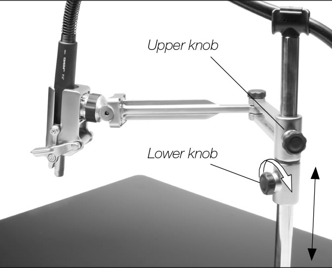 The RWT-B Arm allows adjustment for different heights according to your work needs through the vertical axis rule. Slide the tool holder to the appropriate height and secure by tightening the lower knob to guarantee stability.