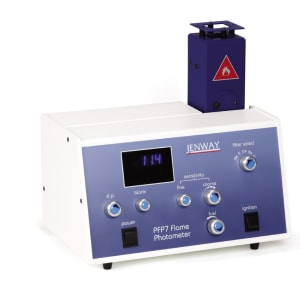 The PFP7 is a low temperature, single channel flame photometer that is designed for the routine determination of sodium, potassium, calcium, barium and lithium concentrations. The flame failure safety system makes these products ideal for use in industrial and educational environments. The use of fine and coarse sensitivity controls allows for accurate measurements each and every time. The Jenway Models PFP7 and PFP7/C are low temperature, single channel flame photometers, designed for the routine determinations of Sodium (Na), Potassium (K), Calcium (Ca), Barium (Ba) and Lithium (Li). Both versions are fitted with automatic flame failure detection for user safety, making them ideal for use in clinical, industrial or educational applications. The Model PFP7/C is specifically designed for use in clinical applications. The in-built lineariser circuitry enables readings of both Na and K, at the normal clinical serum concentrations, to be displayed directly in mmol/l. Serum samples must be diluted 200:1 or 100:1 prior to presentation to the flame photometer. Jenway are able to offer the Series 7 Diluter to enable this to be carried out efficiently and accurately.