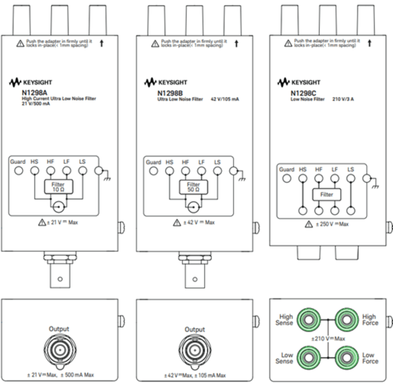 Keysight offers several filters for use with the B2961B and B2962B low noise power sources.