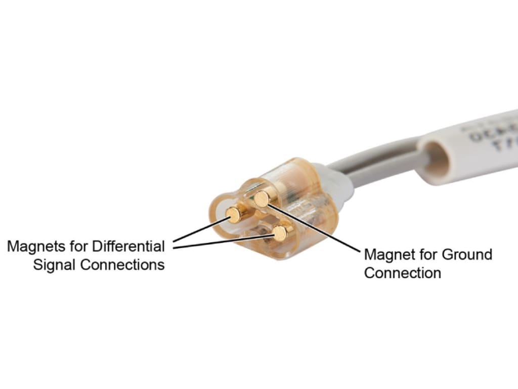 The Keysight N2851A QuickTip probe head for InfiniiMax I/II provides the industry’s only quick connect/disconnect capability when measuring multiple high-speed test points. The QuickTip design uses three small, gold-plated magnets as the actual contacts to gold-plated steel buttons on the probe tip. Engineers can install multiple N2849A QuickTip tips on a device under test, allowing quick and reliable measurement of many probe points.