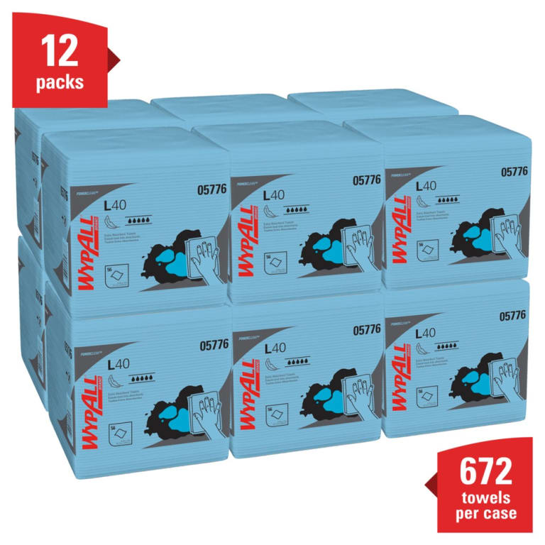 WypAll is the number one brand of disposable wipes in the US and Canada. Maximize performance while minimizing time effort and product waste. If you're looking for an effective wipe to absorb liquids lightning-fast, WypAll Power Clean L40 Extra Absorbent Towels are just what you need. These wipes are made of bonded cellulose using DRC (double re-creped) technology for strength, softness and absorbency. As a wiping towel, it soaks up liquids fast, but all you and your staff will feel is softness, thanks to a plush, touchable outer layer. These utility wipes are specially designed to absorb liquids, lubricants and oils (in restaurants for wiping counters, in mechanic shops, industrial and commercial factories and more), yet they're soft enough for use on face and hands. Experience the difference in superior absorption and cleaning at your home or office today!