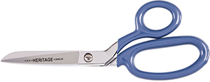 Bent handles glide smoothly along flat surfaces and reduce strain on wrist. Precision ground blades produce a sharp, clean, uniform cut. Large coated handles provide added comfort and leverage. Chrome over nickel-plated blades resist corrosion and rust. Cuts heavy textiles, cardboard, wallpaper, plastic and rubber. Hot forged steel trimmer. Made in USA. Length of cut is 2-3/4-Inch (69.9 mm). Overall length is 7-1/4-Inch (184.2 mm). Weight is 0.24-pound (0.11 kg).