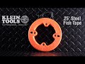 The Klein Tools 25-foot (7.5 m) steel fish tape is great for short wire runs under carpeting, through insulation or over suspended ceilings. The tape features a flat, plastic slotted tip that resists snagging and easily accepts wire attachment. It also features Klein's exclusive descending laser-etched markings. Marked at 1-foot (0.3 m) increments, this fish tape helps measure the depth of conduit runs and lets you determine the amount of tape left to pay out.