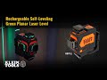 • Rechargeable Self-Leveling Green Planar Laser Level has easy-to-read with high visibility green horizontal and vertical laser lines