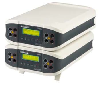 Intelligent Power Supplies for the Lab The ENDURO™ Power Supplies are ideal for DNA, RNA and protein electrophoresis as well as blotting. They provide a high degree of sophistication and versatility yet are extremely easy to use. Three models are available to meet a variety of needs. Operating choices for the power supplies include constant voltage, constant amperage or constant wattage (250V model only) and timed or continuous operation. All operating parameters are set using the membrane keypad and displayed digitally on the backlit LCD. Safety features incorporated into the systems include automatic crossover, no load detection, sudden load change and over voltage protection. The units can also be programmed to restart in the event of a power disruption. The ENDURO™ 250V features a voltage range from 5 to 250V in 1V increments. Current is adjustable in 0.01A steps to a maximum of 3A. Wattage is adjustable in 1W steps up to 300W. The voltage range of the ENDURO™ 300V is from 2 to 300 V in 1V increments. The current is adjustable from 4 to 500mA in 1mA steps. The newest addition is a mini 300V Power Supply and the PowerStack. This full featured power supply provides necessary power to run most horizontal gel and mini gel applications but is a smaller and more cost effective option. When used in conjunction with the PowerStack both bench space and power outlets are conserved.