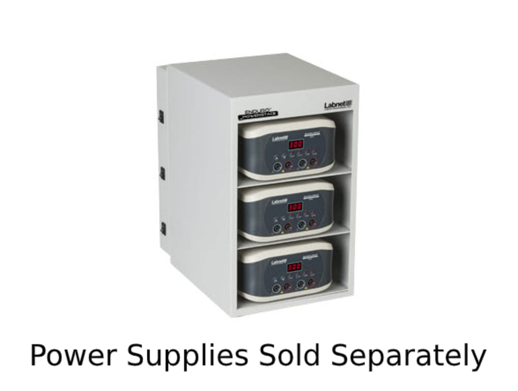 The newest addition is a mini 300V Power Supply and the PowerStack. This full-featured power supply provides the necessary power to run most horizontal gel and mini-gel applications but is a smaller and more cost-effective option. When used in conjunction with the PowerStack both bench space and power outlets are conserved.