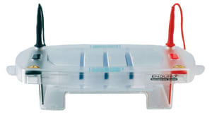 Durability for Gel Electrophoresis ENDURO™ Horizontal Gel Boxes have been designed for ease of use, safety and durability for Gel Electrophoresis. A variety of sizes are available, from a mini gel electrophoresis system to a large maxi gel electrophoresis system that can accommodate as many as 450 samples in a single run. A wide range of accessories are available to customize your system, including multichannel compatible gel combs. QUALITY CONSTRUCTION The ENDURO™ gel tanks are molded for leak-proof performance and a long service life. The corrosion resistant platinum electrodes are located in cassettes to protect them during cleaning and provide for easy replacement. The lids fit on the gel boxes in only one direction. A drip ring on the lid recycles condensed buffer and prevents it from dripping directly onto the gel. EASE OF USE Casting gels for the ENDURO™ system is very easy. Simply snap the rubber gates onto the ends if the tray, place the comb in position and pour the gel - no taping is necessary. Slots on the sides of the gel trays hold the combs in place. The two piece combs are designed so that the teeth can be raised or lowered to vary the depth of the well within the gel. The supplied combs are 1.5 mm thick. Combs of other thicknesses are available separately. After the gel has hardened, the combs and gates are removed and the gel and tray placed in the gel box. Loading strips may be placed on the bottom of the gel box to aid in ell visualization. Gel trays are UV transparent. DESIGNED FOR SAFETY The power leads for the ENDURO™ electrophoresis system are attached to the gel box lid. The connection with the electrodes is made only when the lid is properly in place. Removal of the lid removes power from the system. Side tabs and pressure pads make lid removal easy and prevent sloshing of buffer.