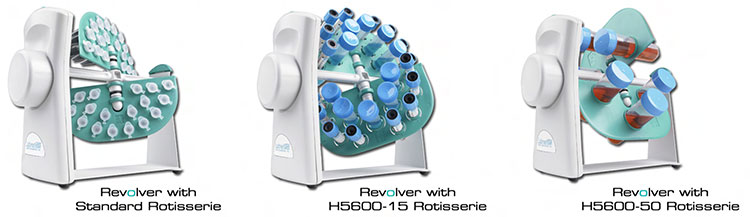 The Revolver™ lab rotator can be used in ambient temperatures from +4°C to 55°C, making it ideal for a variety of laboratory settings such as Molecular Biology, Biochemistry, clinical and Histochemistry. Small enough to fit on a crowded bench, the rotator is easily moved where it is needed - the bench, cold room, incubator or biological hood. With a molded housing and unique rotisserie design, the Revolver is easy to clean and decontaminate. A 36 x 1.5/2.0 ml rotisserie is supplied with the Revolver™. Other configurations are available separately.