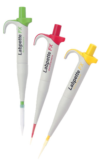 Labpette™ FX fixed volume manual pipettes are ideal for applications where specific volumes are used repeatedly. Thirty-two fixed volume pipettes cover the range from 2 µl to 1000 µl with exceptional accuracy and reproducibility.