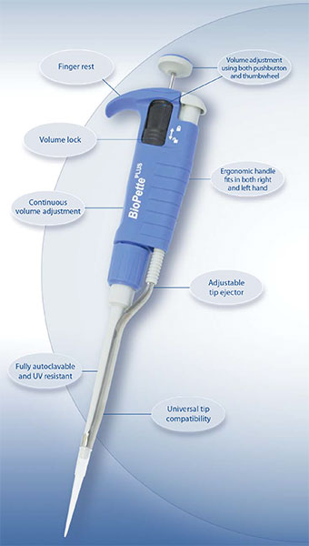 BioPett Plus Autoclavable V-Pette Pipettes Starter Kit. Whitebox version, no Labnet labeling/markings