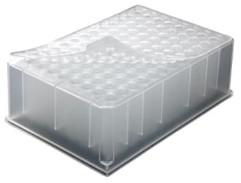 These deep well microplates are ideal for high throughput applications and storage of samples. They are compatible with sample processing workstations, microplate processing equipment, and many microplate centrifuge rotors. Each of these plates has 96 round wells in a standard 8 x 12 format. The 0.5 ml plates are manufactured from polypropylene for excellent temperature and chemical resistance. They can be frozen or autoclaved and when used with the strip caps (available separately), are perfect for freezer storage of samples. Well bottoms are conically shaped. Available in either polypropylene or polystyrene with round well bottoms, the 1.0 ml plates meet SBS standards and are DNase/RNase free. The polypropylene plates are useful for a variety of applications where temperature and chemical resistance is required. Polystyrene plates are ideal for cell adhesion applications. Strip caps and sealing mats are sold separately. Clear adhesive tapes, thermal sealing film, and thermal sealing foil are also available.